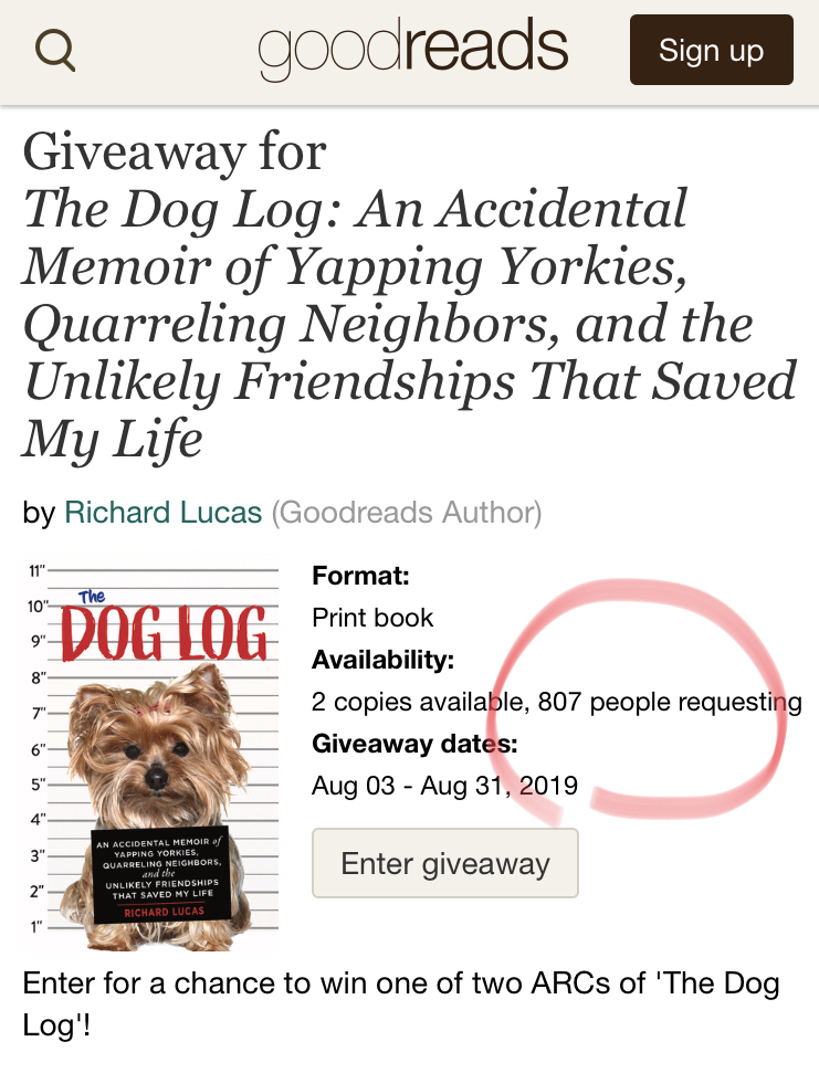 Over 1,350 people entered to win one of two advance copies of The Dog Log via Chicago Review Press!
