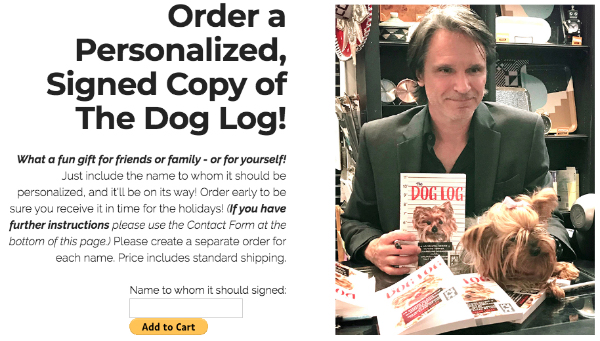 You can now special order a personalized, author-signed copy of The Dog Log for family or friends, or for yourself! Go to the > PAYPAL LINK < on the book page to order!